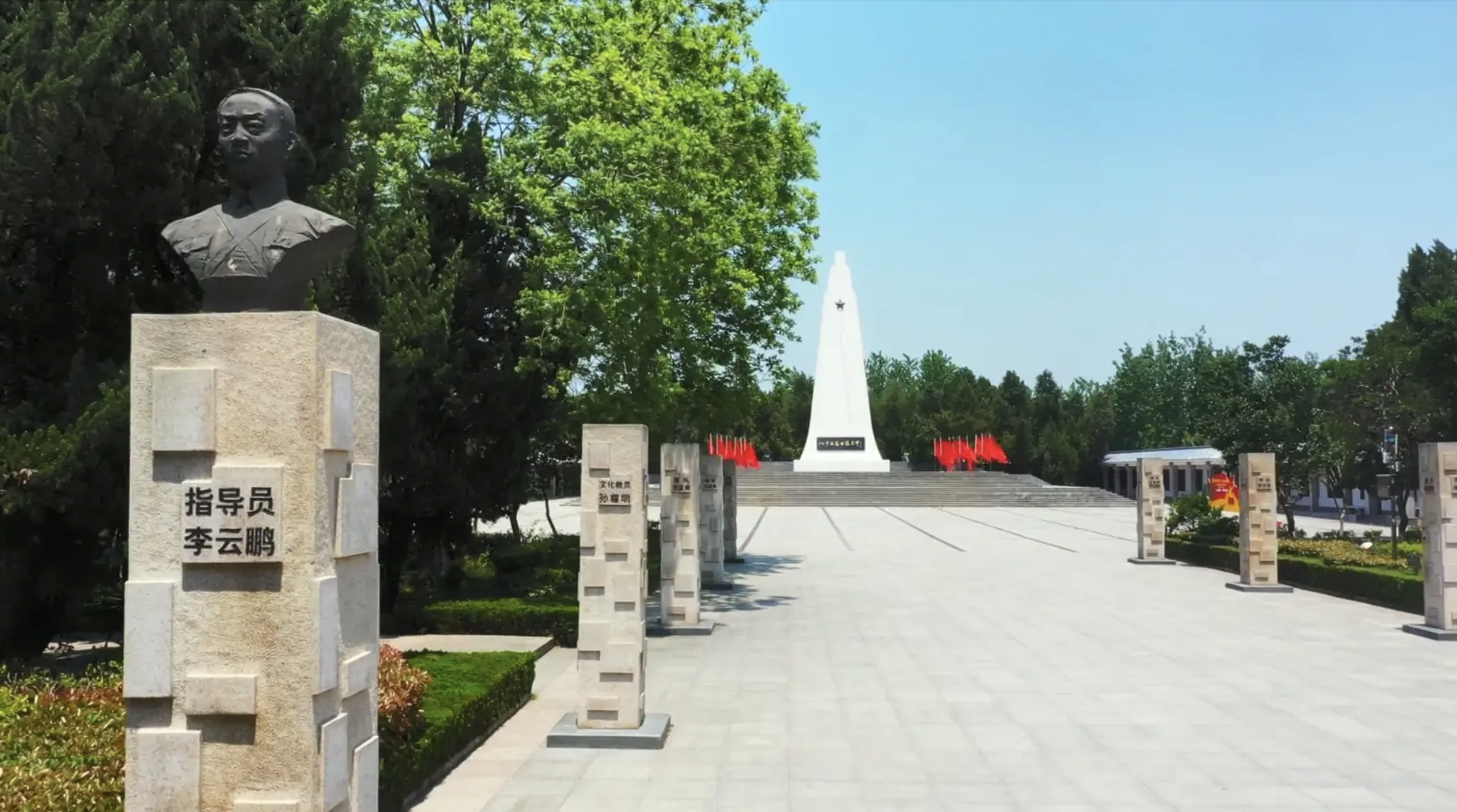 The Liu Laozhuang Company Memorial, honoring the heroes of the New Fourth Army. On the left stands a bust of Li Yunpeng. (Photo: Jiangsu News Broadcasting)