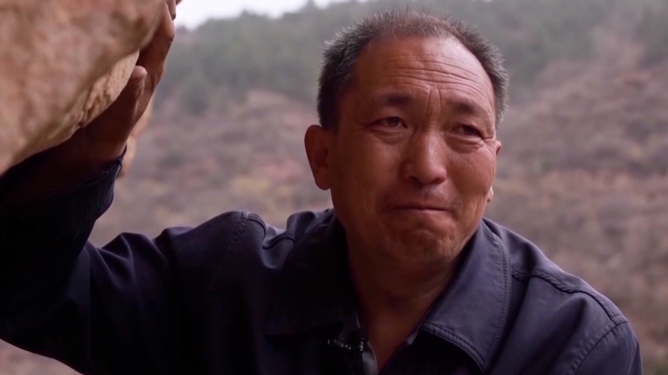 Guo navigates a rugged ountain path in search of fallen soldiers' remains among the Taihang mountains. (Photo: CCTV)