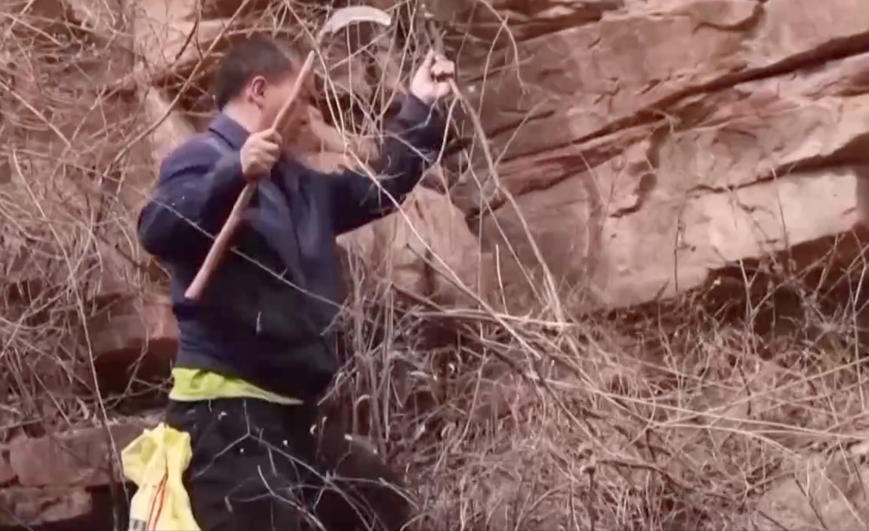 Since 2012, Guo has trekked alone through steep, often treacherous terrain — sometimes climbing slopes with gradients as high as 70 degrees — hacking through thorny underbrush with his sickle.