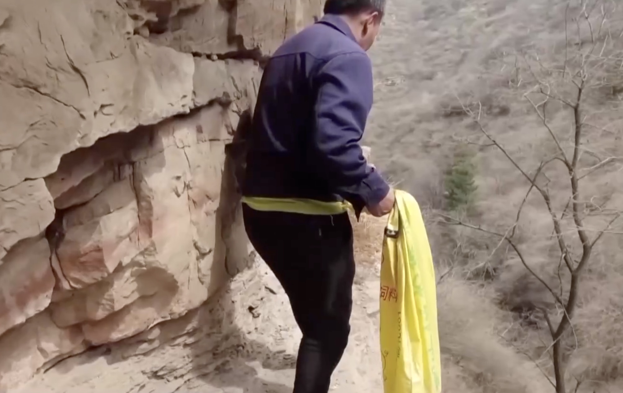 Guo makes his way along a narrow mountain trail among the Taihang Mountains. (Photo: CCTV)