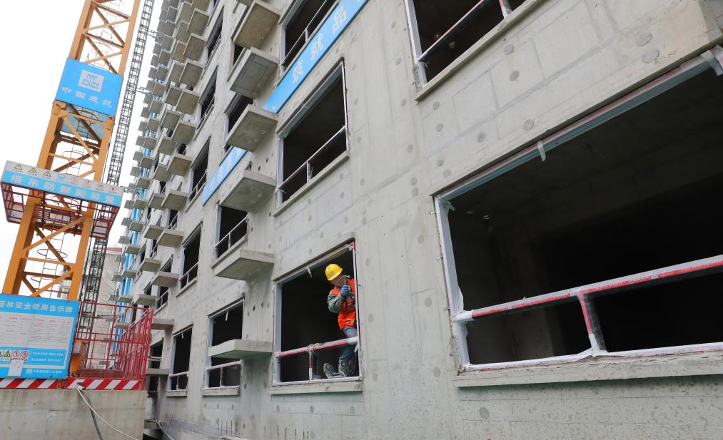 This photo taken on March 15, 2024 shows the construction site of a residential complex under an urban renewal project in Jing'an District of East China's Shanghai. (Xinhua/Fang Zhe)