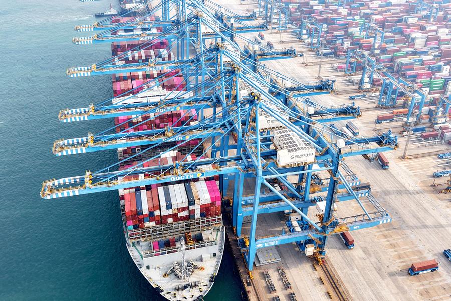 Containers are unloaded at Qingdao Port, East China's Shandong Province, December 10, 2024. (Photo: Xinhua)
