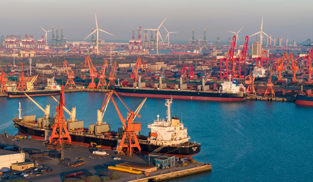 A drone photo taken on Jan. 2, 2026 shows a view of a terminal of a subsidiary of Tianjin Port Holdings Co., Ltd. at Tianjin Port in north China's Tianjin. (Photo: Xinhua)