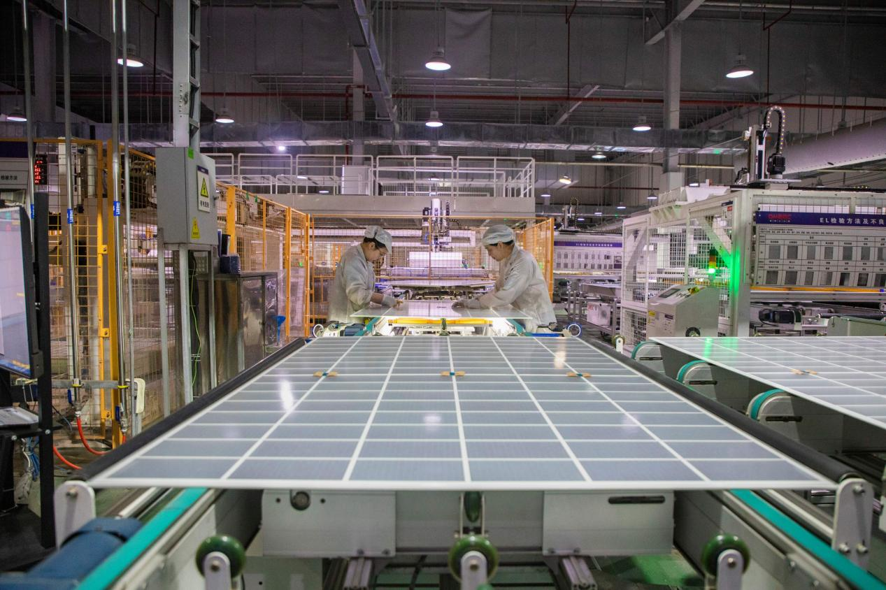 A 5G-engabled digital production line for photovoltaic panels runs in full capacity in a workshop of a new energy technology company in Suqian, East China's Jiangsu province. (Photo: Liu Ye)