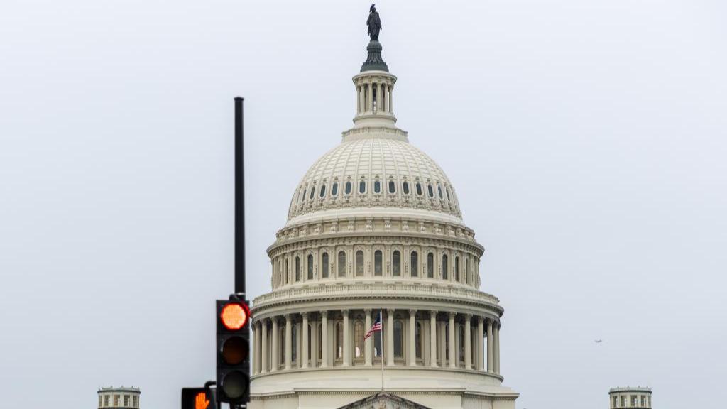 The U.S. Capitol building and traffic lights are seen in Washington D.C., the United States, September 30, 2025. (Photo: Xinhua)