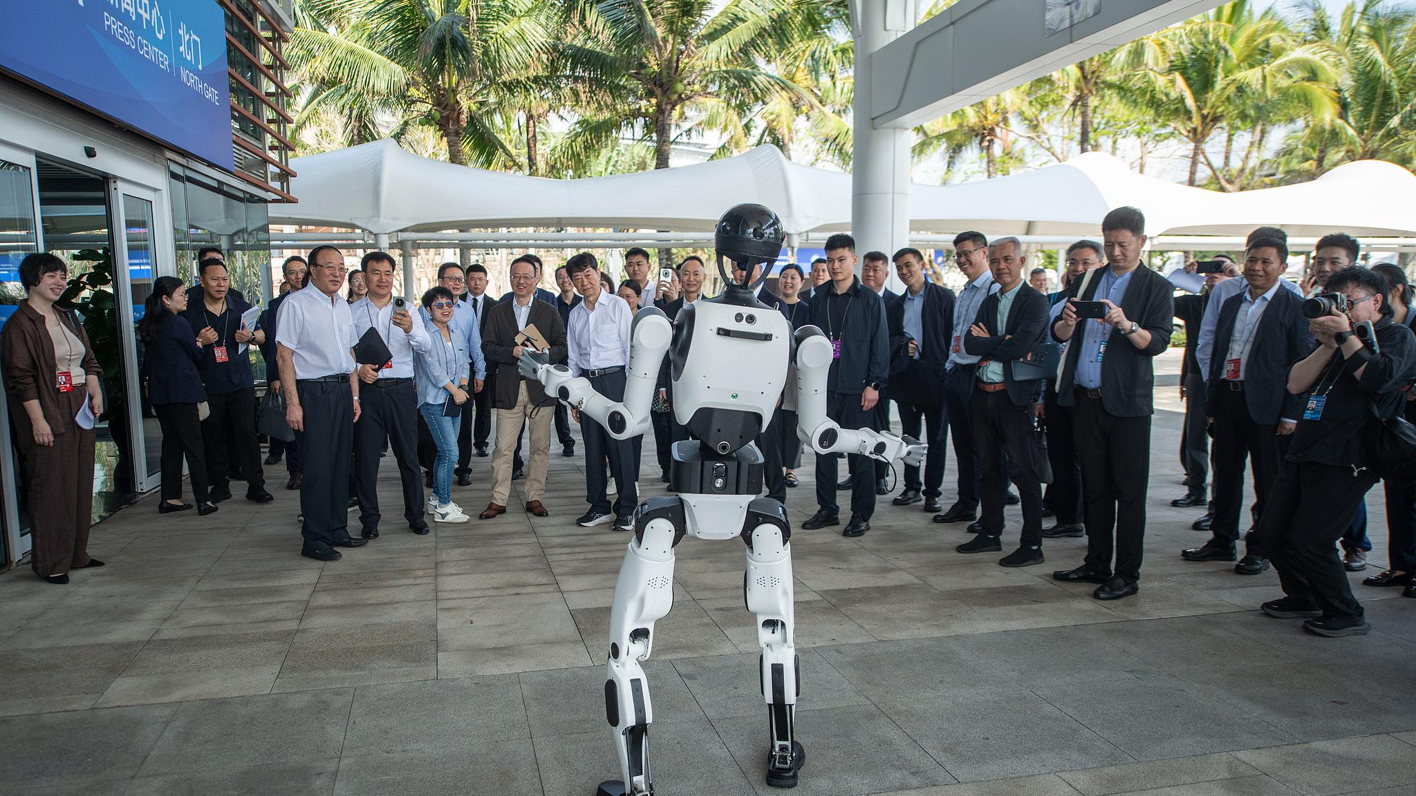 Guests watch a robot performance at the Boao Forum for Asia Press Center in Qionghai, Hainan Province, south China, March 23, 2026. /CFP