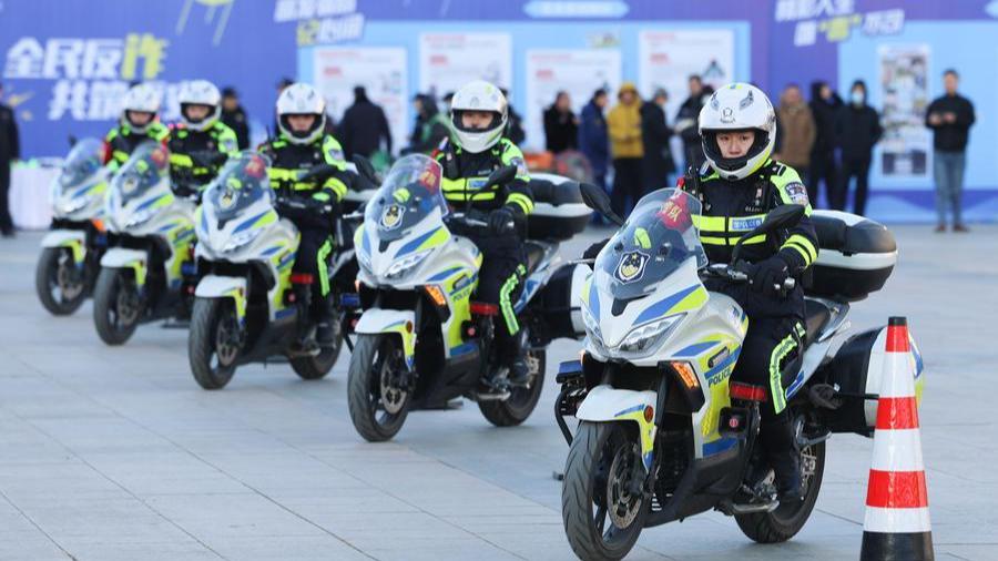 Police officers demonstrate their motorcycle riding skills in Shijiazhuang, Hebei Province in north China, January 10, 2026. (Photo: Xinhua)