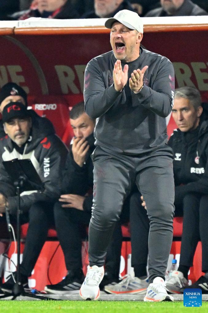 Lukas Kwasniok, head coach of FC Cologne, reacts during the German first division Bundesliga football match between FC Cologne and FC Bayern Munich in Cologne, Germany, Jan. 14, 2026. (Photo by Ulrich Hufnagel/Xinhua)