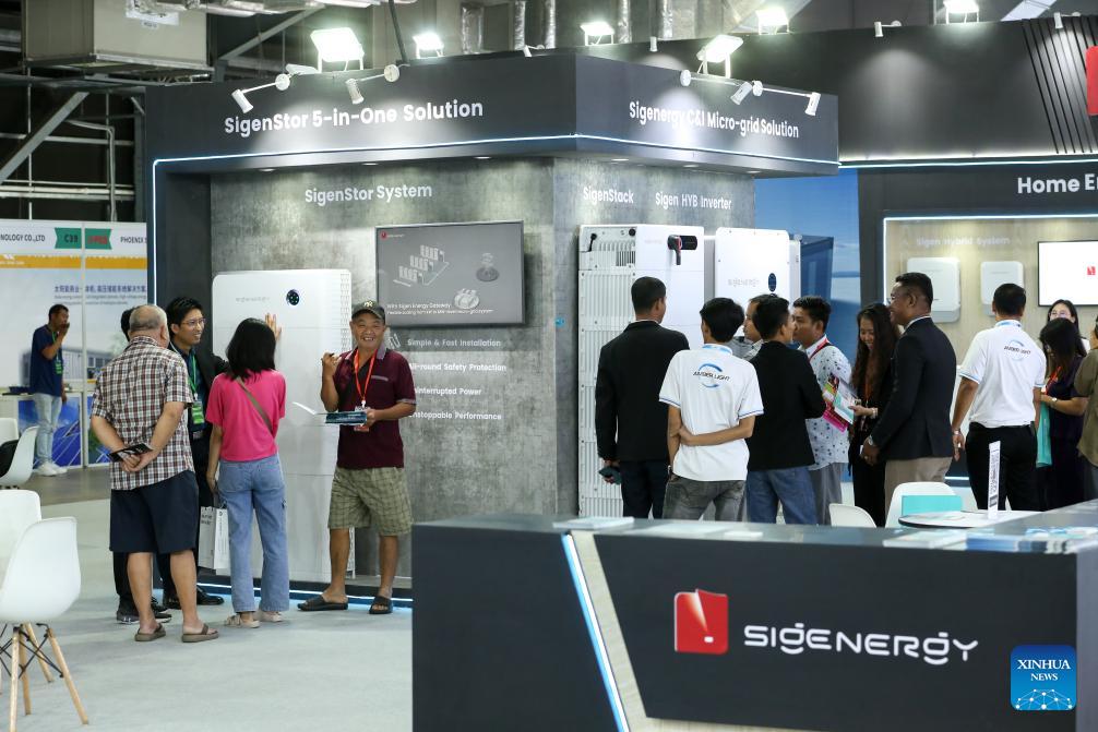 People visit the Myanmar Power and Solar Energy Storage Lighting Expo 2026 at the Yangon Convention Center in Yangon, Myanmar, Jan. 16, 2026. The three-day exhibition kicked off in Myanmar on Friday, attracted more than 70 exhibitors. (Xinhua/Myo Kyaw Soe)