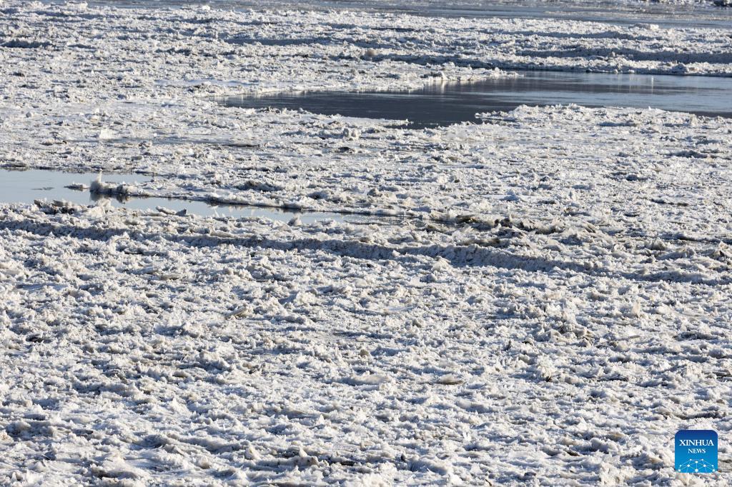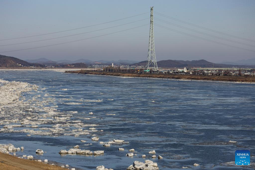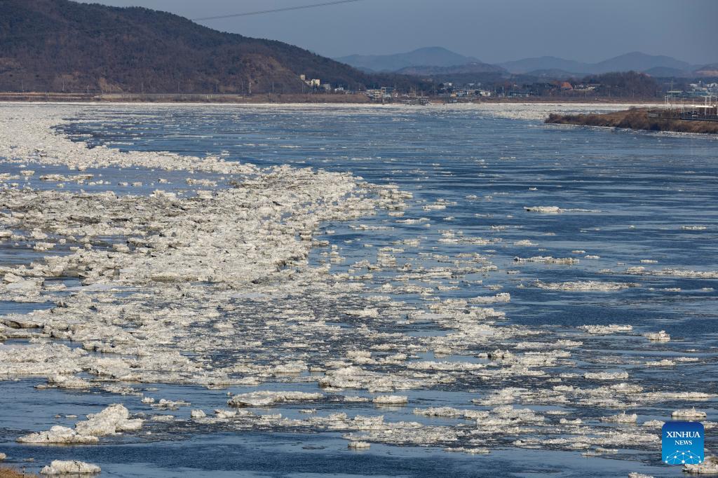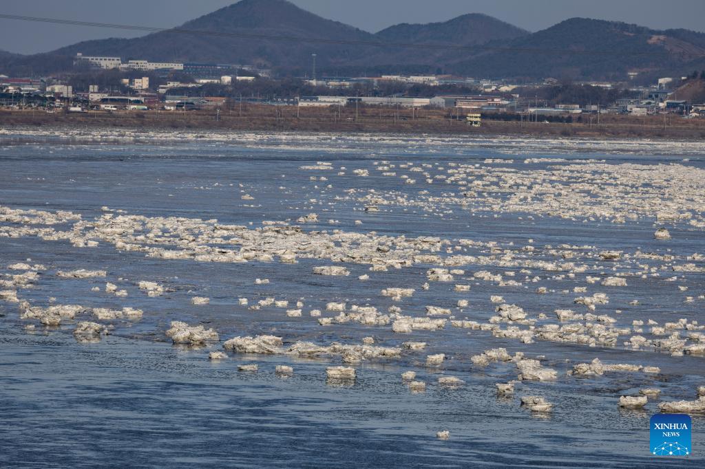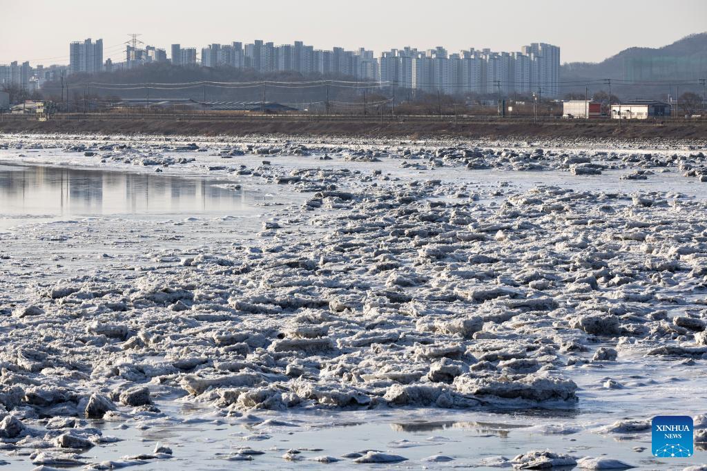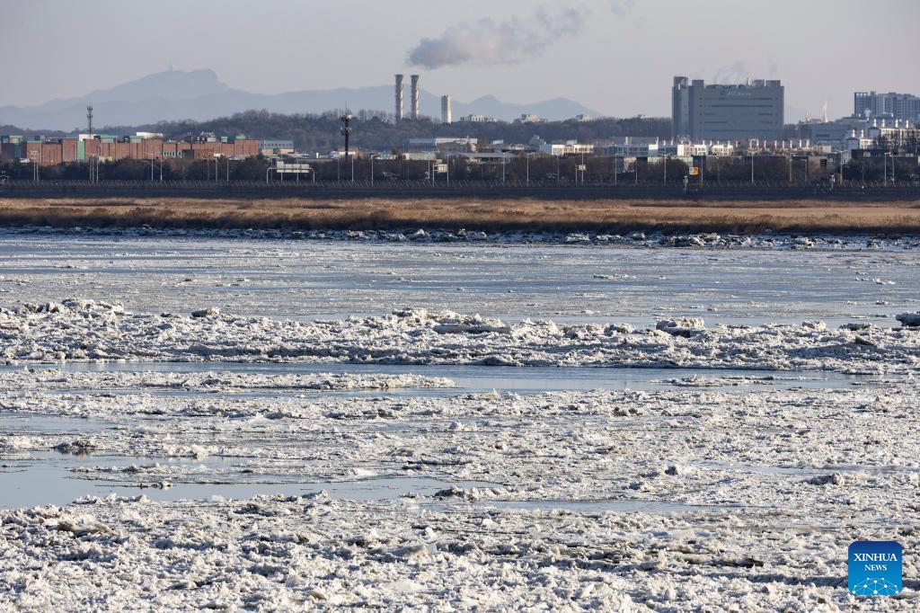 This photo taken on Jan. 25, 2026 shows a view of drift ice floating on the Han River in Gyeonggi-do, South Korea. Various parts of South Korea greeted cold fronts in recent days. (Photo by Jun Hyosang/Xinhua)