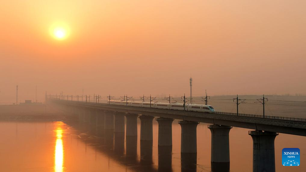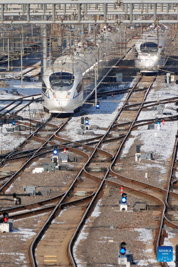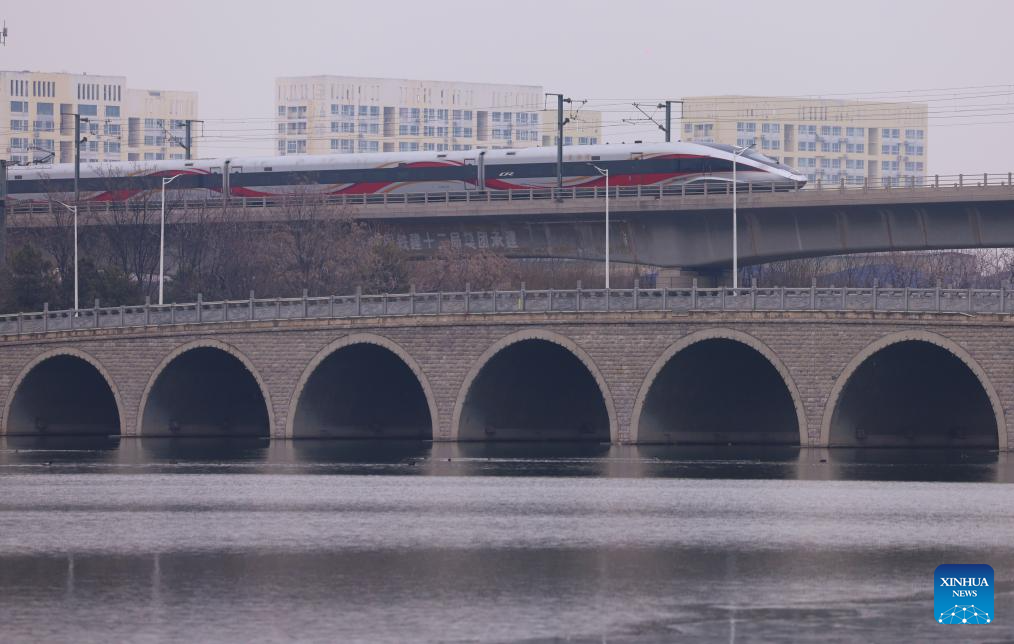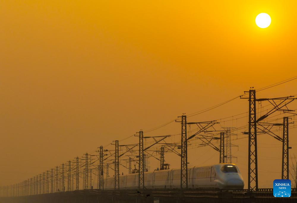 A bullet train runs in Shijiazhuang City of north China's Hebei Province, Jan. 25, 2026. A new train schedule will be put into effect in China from Jan. 26. 2026. (Photo by Liang Zidong/Xinhua)