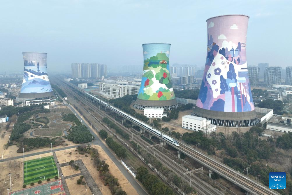 A drone photo taken on Jan. 25, 2026 shows a bullet train running in Changzhou City, east China's Jiangsu Province. A new train schedule will be put into effect in China from Jan. 26. 2026. (Photo by Chen Wei/Xinhua)
