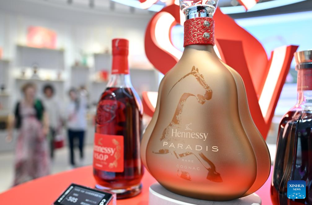 This photo taken on Jan. 24, 2026 shows Year of the Horse themed alcohol at Haikou International Duty Free Shopping Complex in Haikou, south China's Hainan Province. With the Year of the Horse approaching, many international brands have incorporated Chinese zodiac culture and traditional Chinese design elements into their products, launching Year of the Horse editions to compete in the Chinese Lunar New Year market. (Xinhua/Guo Cheng)