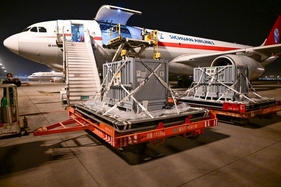 Giant pandas Xiao Xiao and Lei Lei arrive at the Chengdu Tianfu International Airport in Chengdu, Southwest China's Sichuan Province, January 28, 2026. The final two giant pandas in Japan returned to China from a zoo in Tokyo on Wednesday morning, marking the end of over five decades of panda presence in Japan. (Photo: Xinhua)