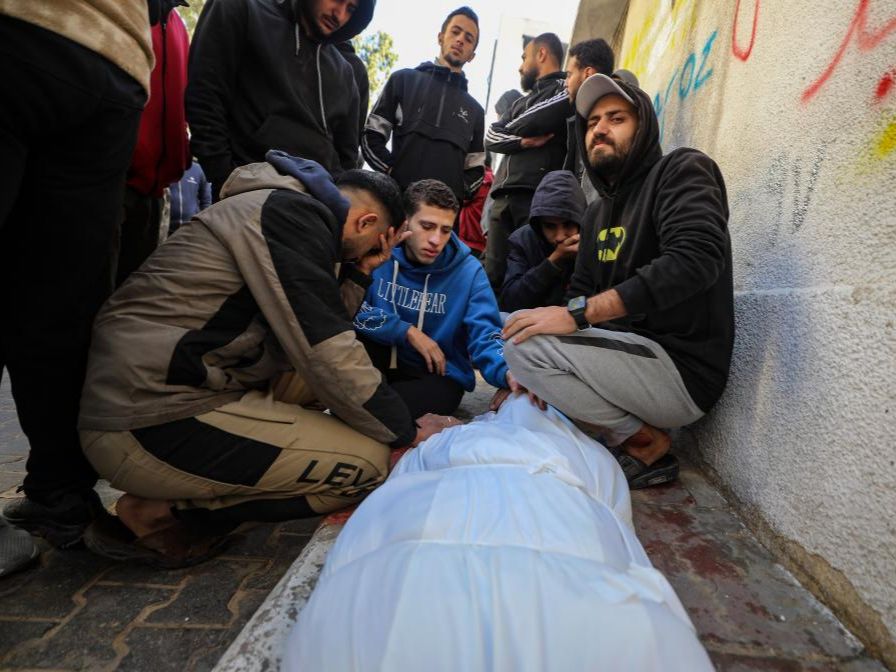 Palestinians bid farewell to a relative killed in Israeli attacks at Al-Shifa Hospital in Gaza, February 4, 2026. At least 21 Palestinians, including a paramedic, were killed in Israeli attacks across the Gaza Strip on Wednesday, the Palestinian Civil Defense in Gaza said.(Photo: Xinhua)