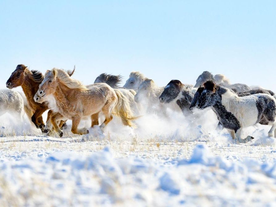 Horses run on a snowfield during a new year event in Xilinhot City, Xilingol League, North China's Inner Mongolia Autonomous Region, February 5, 2026. (Photo: Xinhua)
