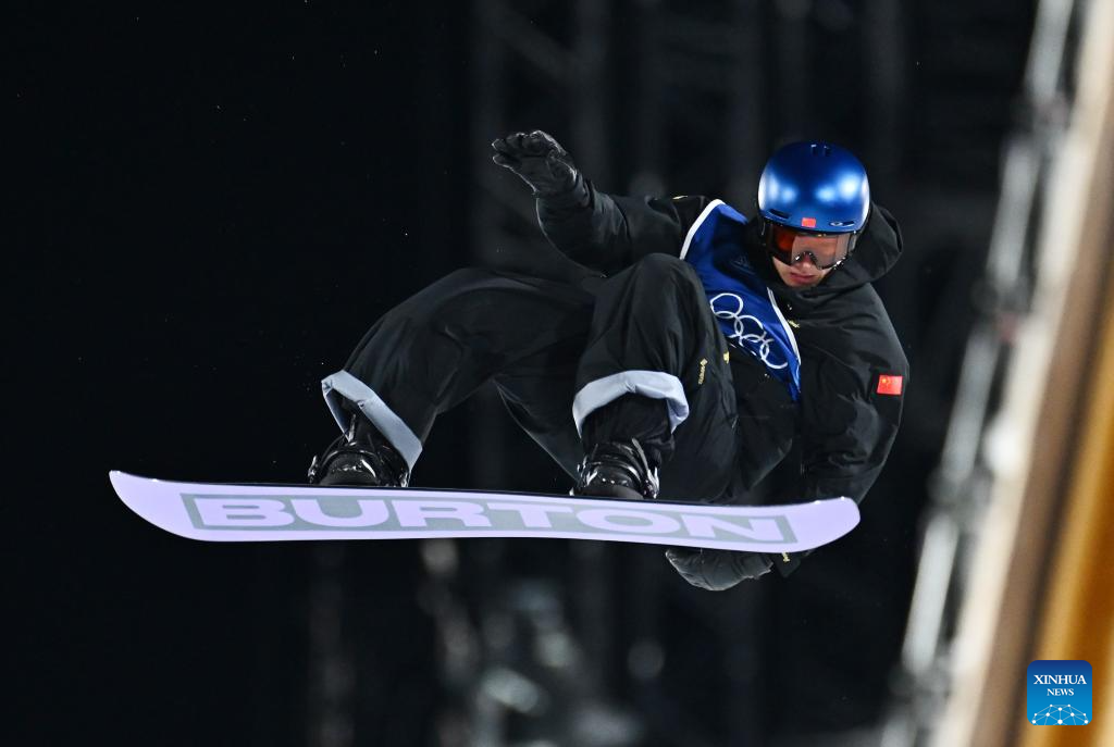 Su Yiming of China competes during the Men's Snowboard Big Air Final at the Milan-Cortina 2026 Olympic Winter Games in Livigno, Italy, February 7, 2026. (Photo: Xinhua)