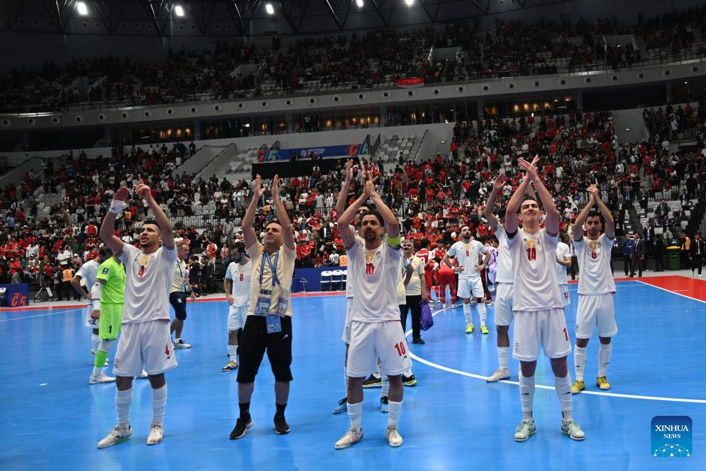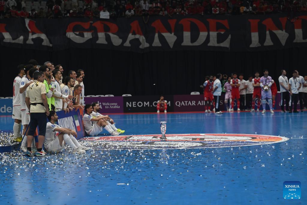 Players of team Iran give applause salute to supporters after the final match between Indonesia and Iran at the AFC Futsal Asian Cup 2026 in the Indonesia Arena stadium, Jakarta, Indonesia, Feb. 7, 2026. (Xinhua/Agung Kuncahya B.)