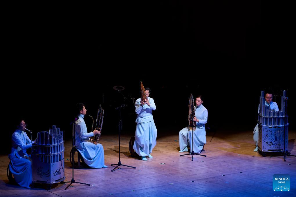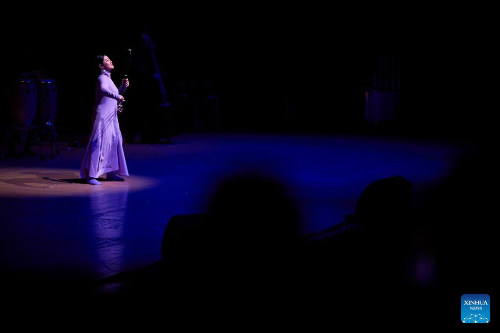 A member of the Shanghai Chinese Orchestra performs during the "Colors of China" concert in Valencia, Spain, Feb. 10, 2026. (Photo by Pablo Morano/Xinhua)