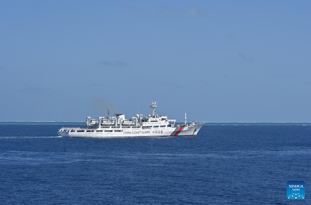 The China Coast Guard (CCG) vessel Zhongsha patrols in the territorial waters of China's Huangyan Dao on Feb. 4, 2026. (Photo by Zhai Yifan/Xinhua)