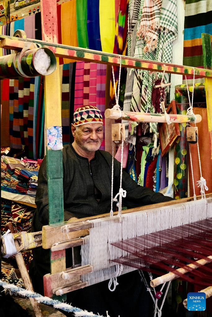 A man weaves at a Nubian village in Aswan, Egypt, Feb. 20, 2026. The Nubians are an ethno-linguistic group living along the Nile River in southern Egypt and northern Sudan, with a distinct language and rich cultural traditions. (Xinhua/Xin Mengchen)