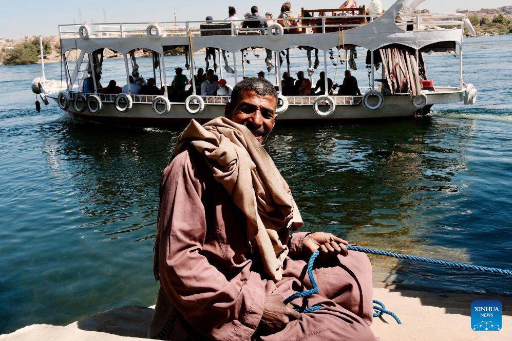 A man works at a port of a Nubian village in Aswan, Egypt, Feb. 20, 2026. The Nubians are an ethno-linguistic group living along the Nile River in southern Egypt and northern Sudan, with a distinct language and rich cultural traditions. (Xinhua/Xin Mengchen)
