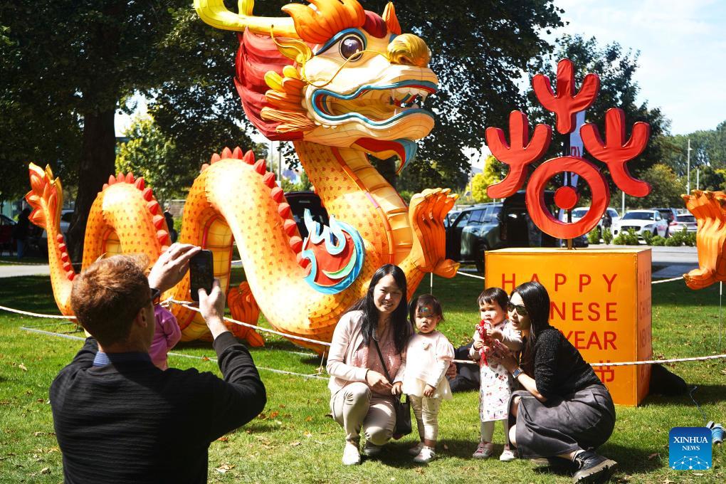 Visitors pose for photos at an event celebrating the Spring Festival in Christchurch, New Zealand, Feb. 21, 2026. A series of events celebrating the Spring Festival is held here from Feb. 20 to 22. (Photo by Chen Siyumeng/Xinhua)
