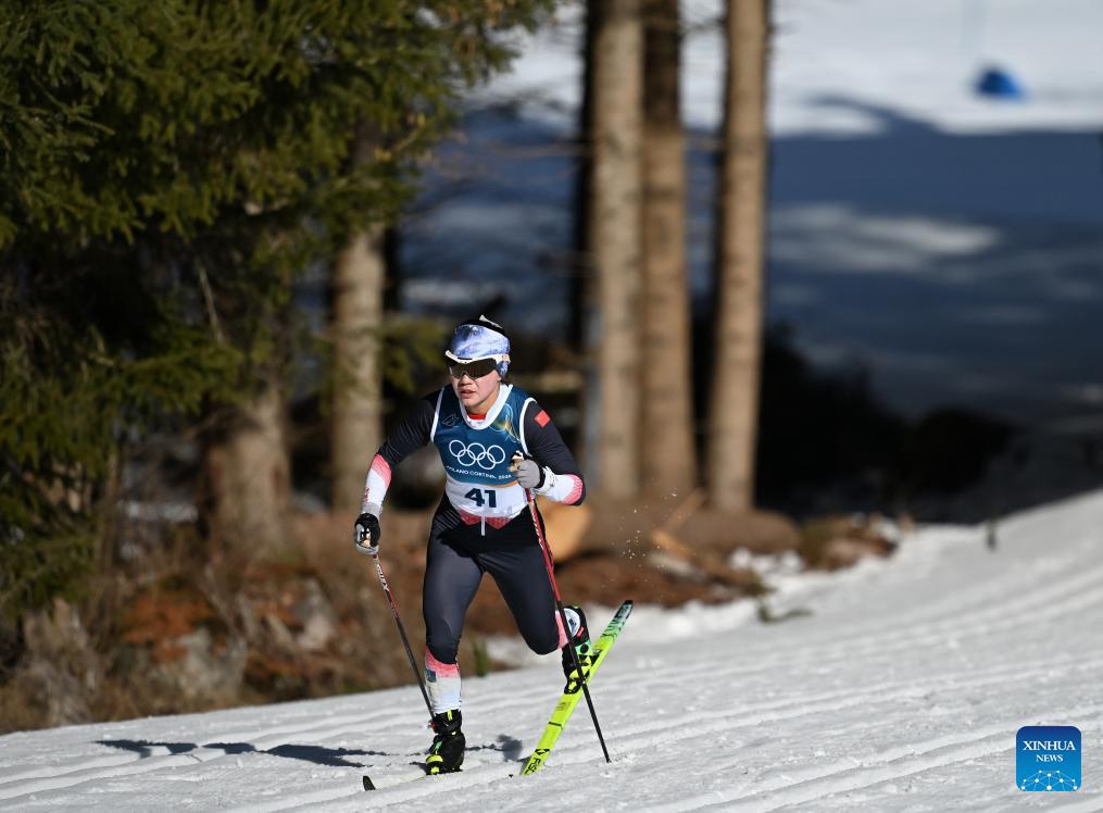 Wang Yundi of China competes during the cross-country skiing women's 50km mass start classic match at the Milan-Cortina 2026 Olympic Winter Games in Tesero, Italy, Feb. 22, 2026. (Xinhua/He Canling)