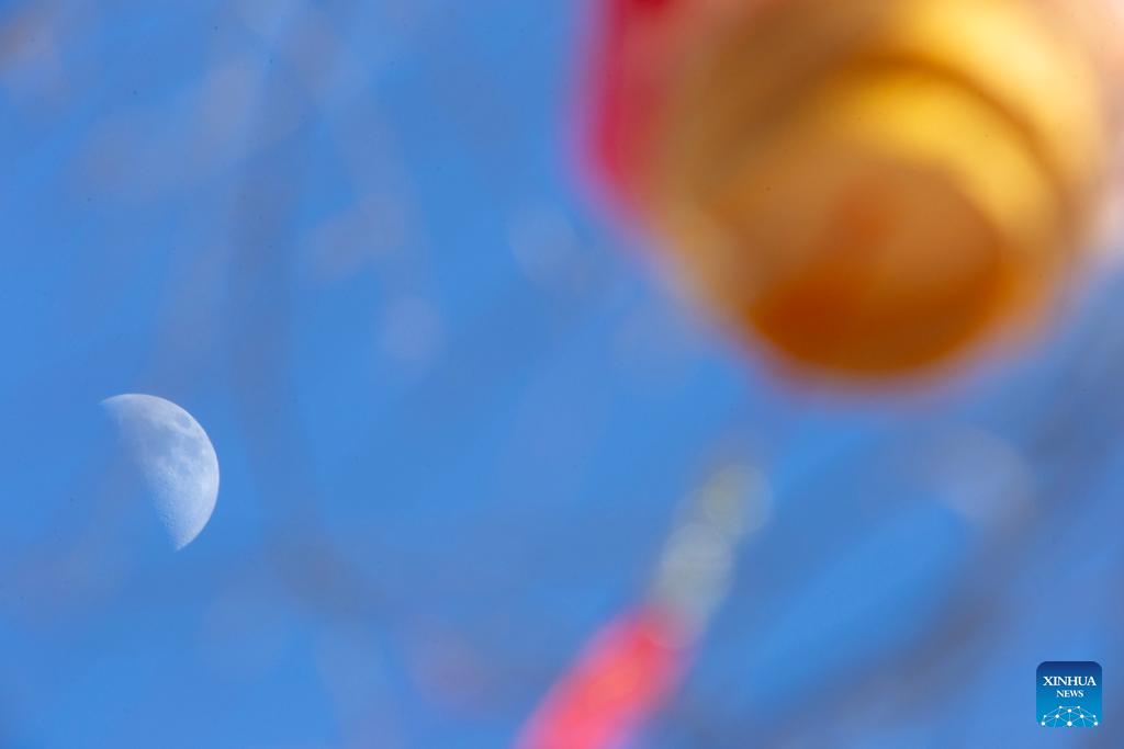 This photo taken on Feb. 24, 2026 shows the moon above Yabuli Ski Resort in Yabuli, northeast China's Heilongjiang Province. The largest first quarter moon of the year appeared in the sky on Tuesday. The moon was near its perigee in orbit, approximately 370,000 kilometers from the Earth. (Photo by Zeng Dong/Xinhua)