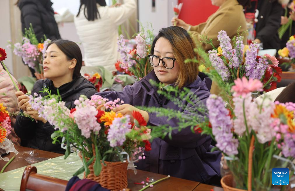 Women attend a flower arrangement competition in Linyi City, east China's Shandong Province, March 8, 2026. Various events were held across China on Sunday to mark the International Women's Day. (Photo by Wang Yanbing/Xinhua)