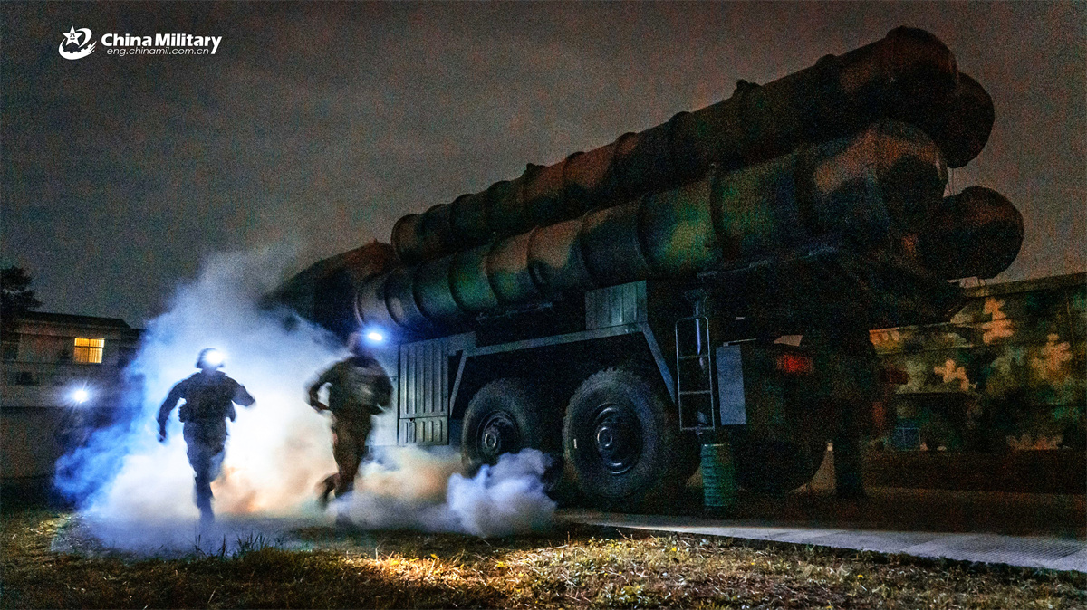 Soldiers assigned to an air-defense unit under the Chinese PLA Air Force conduct Chemical, Biological, Radioactive and Nuclear (CBRN) decontamination operations during a multi-subject training exercise on February 27, 2026. (eng.chinamil.com.cn/Photo by Chen Yi)