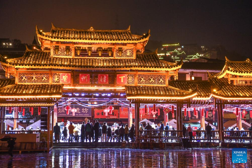 People watch the "Village T" fashion show in Kaili, Qiandongnan Miao and Dong Autonomous Prefecture, southwest China's Guizhou Province, on March 8, 2026. Embroiderers from Qiandongnan Miao and Dong Autonomous Prefecture participated in the "Village T" fashion show to showcase colorful ethnic costumes. (Xinhua/Yang Wenbin)