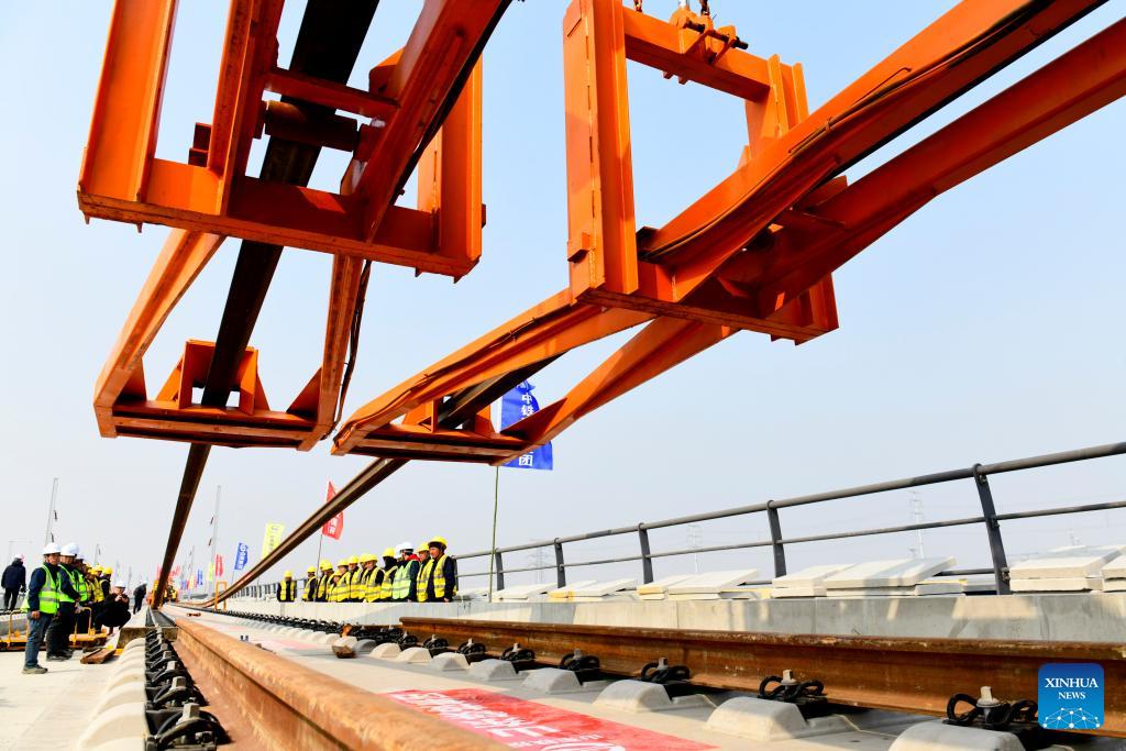Jinan-Binzhou high-speed railway in E China enters full-line track-laying operation phase