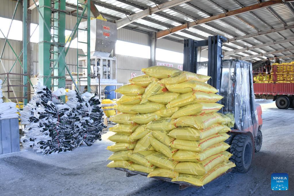 Workers transport fertilizer raw materials to the intelligent fertilizer mixing production line at a farming company under Beidahuang Group in northeast China's Heilongjiang Province, March 16, 2026. In recent days, the agricultural production units of Beidahuang Group in the Heilongjiang Reclamation Area are making preparation work for spring ploughing. (Photo by Xu Yingxian/Xinhua)
