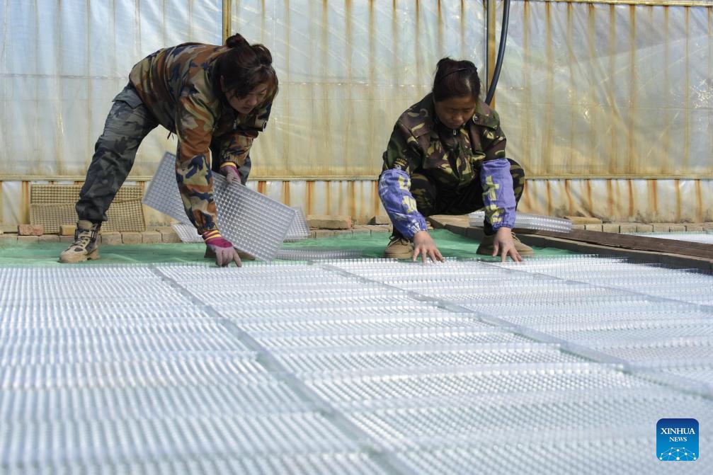 Farmers work at a seedling cultivation base of a farming company under Beidahuang Group in northeast China's Heilongjiang Province, March 17, 2026. In recent days, the agricultural production units of Beidahuang Group in the Heilongjiang Reclamation Area are making preparation work for spring ploughing. (Photo by Li Xing/Xinhua)