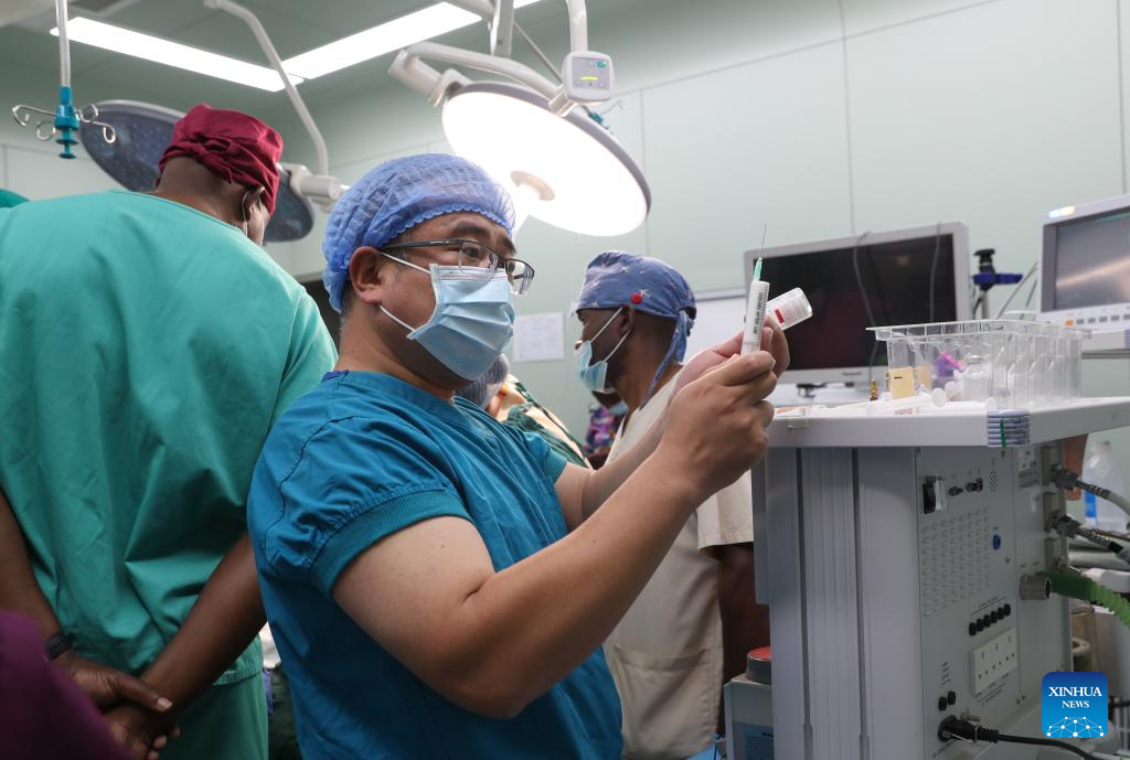 A Chinese doctor prepares for anesthetic injection at the Levy Mwanawasa University Teaching Hospital in Lusaka, Zambia, on March 17, 2026. The 26th China Medical Team in Zambia arrived in the African country in June 2025. The team was divided into four groups, working respectively at the University Teaching Hospital, Levy Mwanawasa University Teaching Hospital, Ndola Teaching Hospital and Livingston Central Hospital. (Xinhua/Chen Wei)