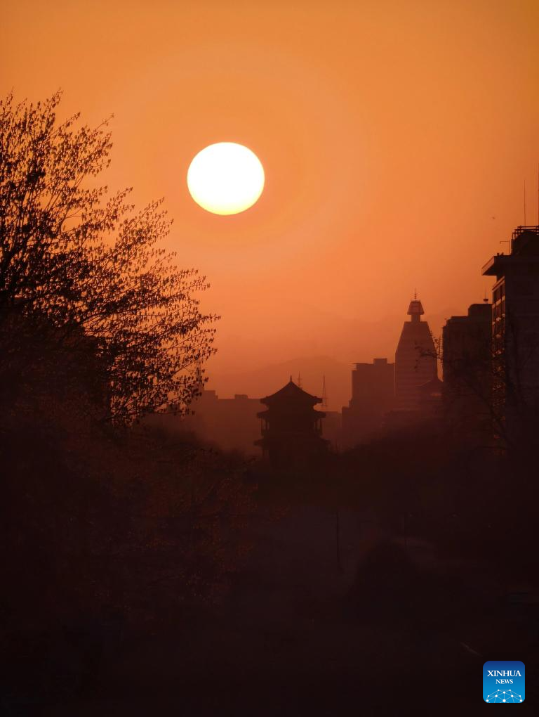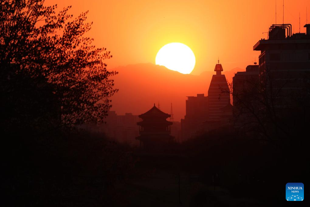 This photo taken on March 18, 2026 shows a sunset view seen from the Ming Dynasty City Wall Relics Park, in Beijing, capital of China. (Xinhua/Xing Guangli)