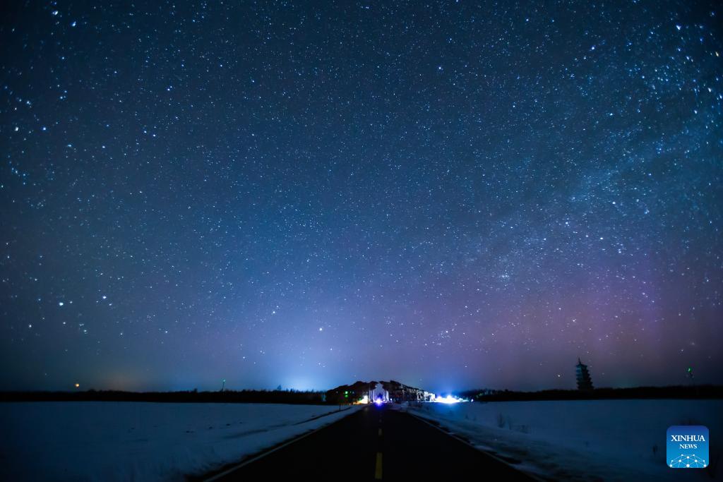 This photo taken on March 22, 2026 shows the aurora observed from Beiji Village of Mohe City, northeast China's Heilongjiang Province. Due to the influence of geomagnetic activities, many places in Heilongjiang Province witnessed splendid auroras from the night of March 22 to the early morning of March 23. (Photo by Guo Xinyu/Xinhua)