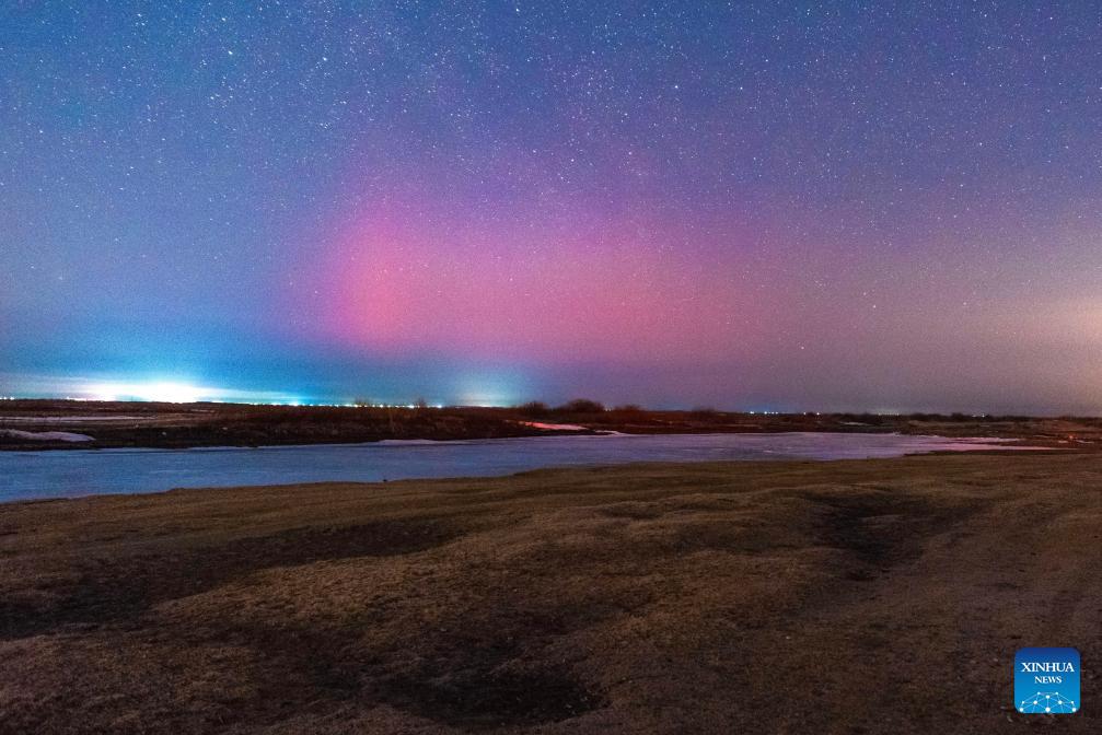 This photo taken on March 22, 2026 shows the aurora observed from Daqing City, northeast China's Heilongjiang Province. Due to the influence of geomagnetic activities, many places in Heilongjiang Province witnessed splendid auroras from the night of March 22 to the early morning of March 23. (Photo by Liu Wei/Xinhua)