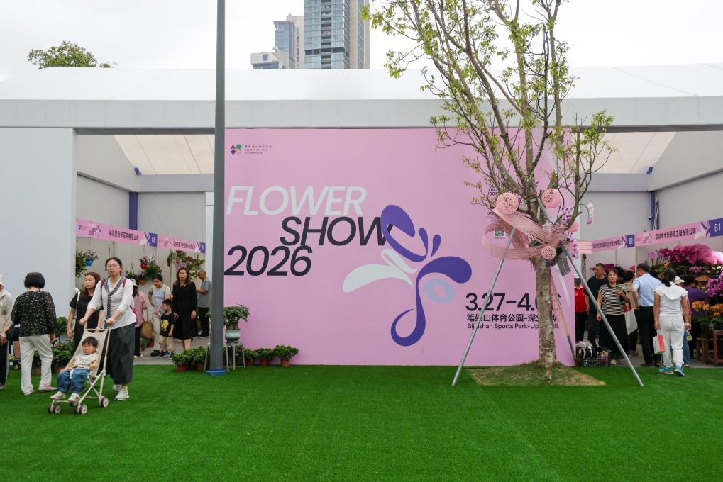 People visit a flower show in Shenzhen, south China's Guangdong Province, on March 27, 2026. The 2026 Guangdong-Hong Kong-Macao Greater Bay Area (GBA) Flower Show kicked off on Friday at Bijiashan Sports Park in Shenzhen, and will run until April 6. (Xinhua/Liang Xu)