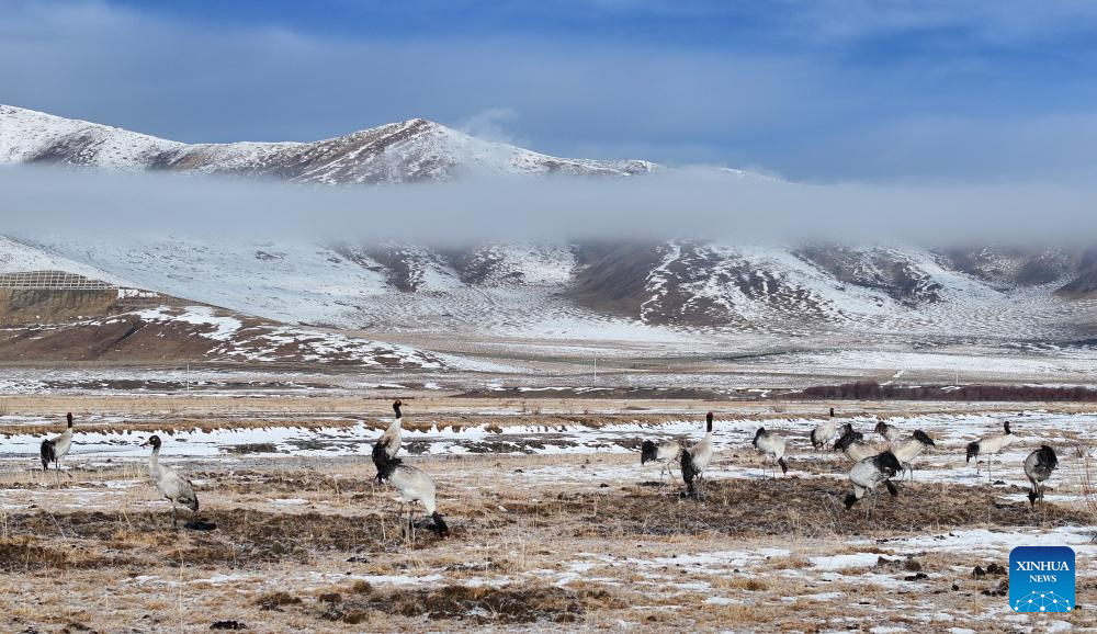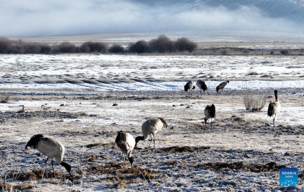 Black-necked cranes seen in Hongyuan County, China's Sichuan