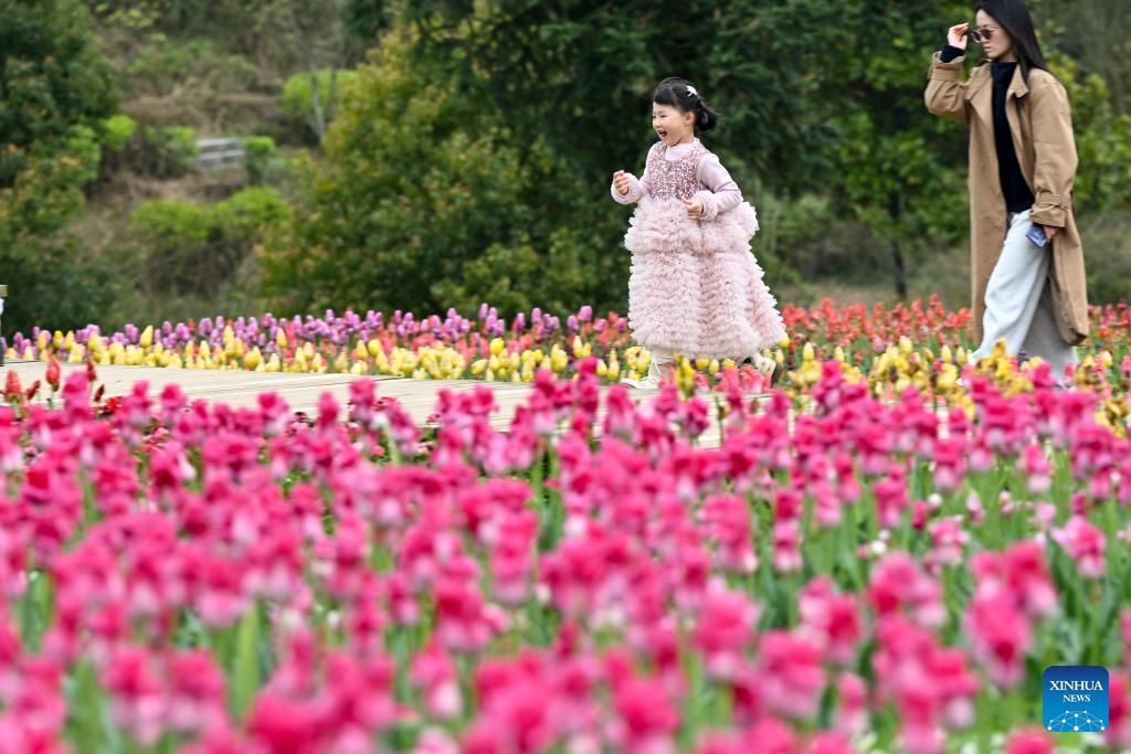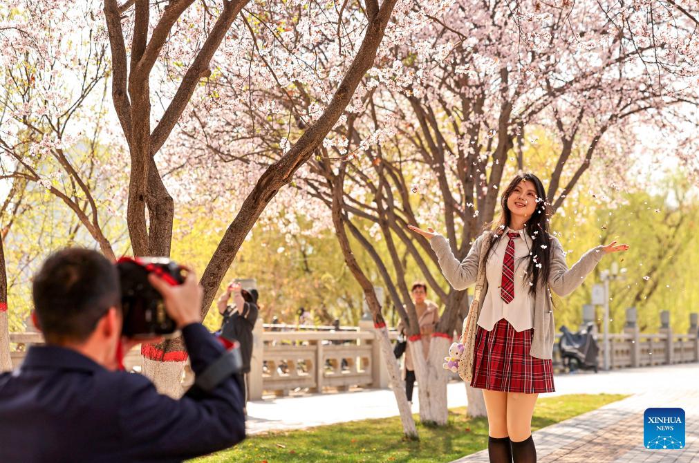 Tourists enjoy spring time at a park in Shijiazhuang, north China's Hebei Province, March 31, 2026. (Photo by Liang Zidong/Xinhua)
