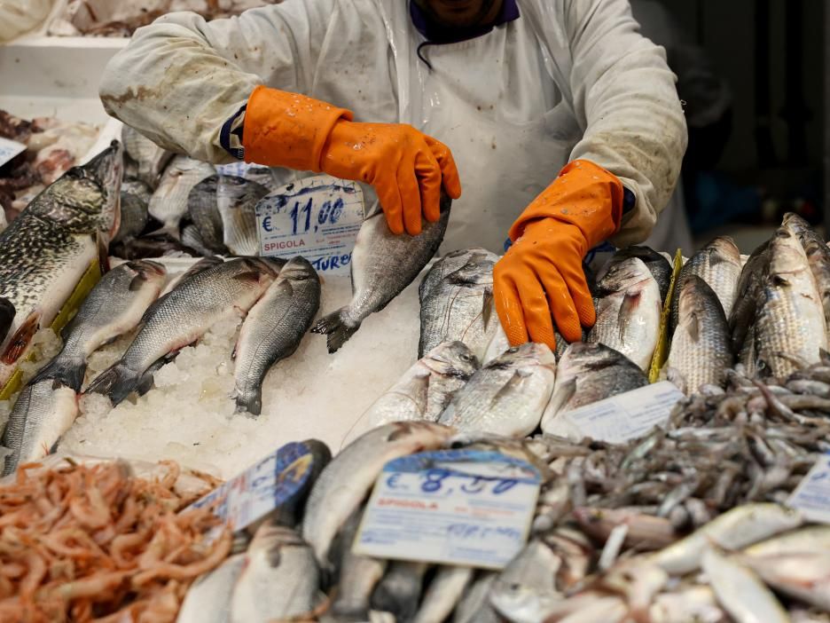 A vendor displays seafood at a market in Rome, Italy, on March 31, 2026. Euro area annual inflation is expected to rise to 2.5 percent in March from 1.9 percent in February, exceeding the European Central Bank's 2 percent target, driven largely by a sharp rebound in energy prices, according to a flash estimate published by Eurostat on Tuesday. (Photo: Xinhua)