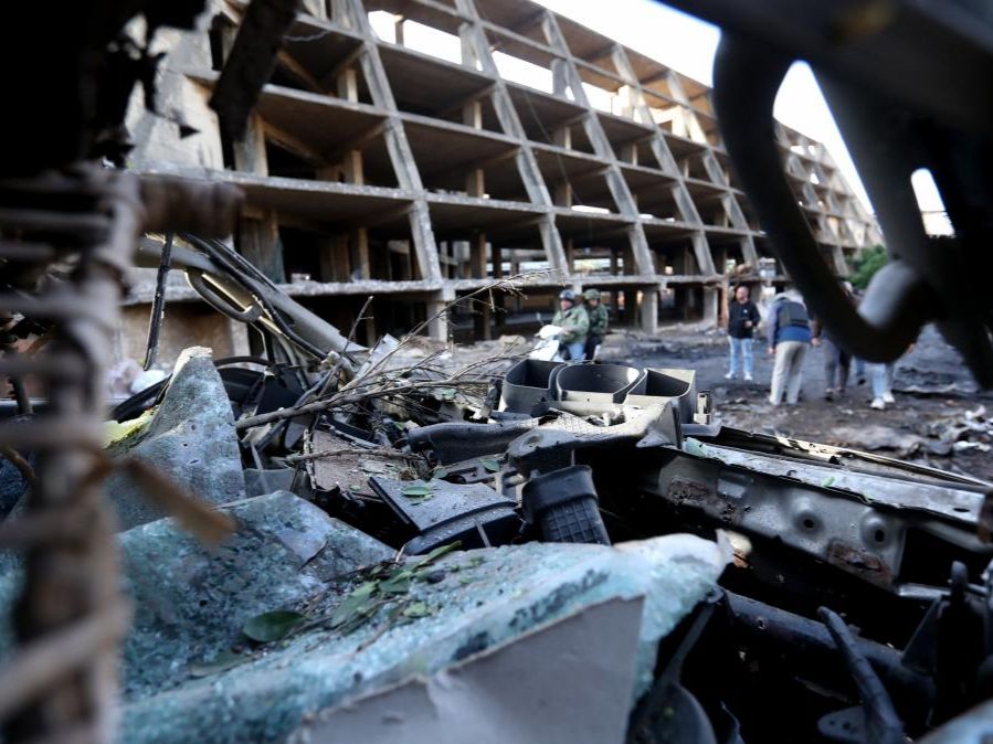 This photo taken on April 1, 2026 shows buildings and vehicles destroyed in Israeli strikes in the Jnah area of Beirut, Lebanon. An Israeli naval strike targeted a convoy of vehicles in the Jnah area of Beirut on Tuesday night, setting several cars on fire and causing loud explosions heard across the capital and its suburbs, Lebanon's National News Agency reported. (Photo: Xinhua)