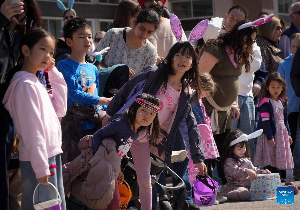 Children take part in an egg hunt during the annual Easter Parade at Ladner Village in Delta, British Columbia, Canada, on April 5, 2026. The annual Easter event, a community tradition of more than 60 years, featured a festive parade and family-oriented activities, drawing local residents to celebrate the holiday. (Photo by Liang Sen/Xinhua)