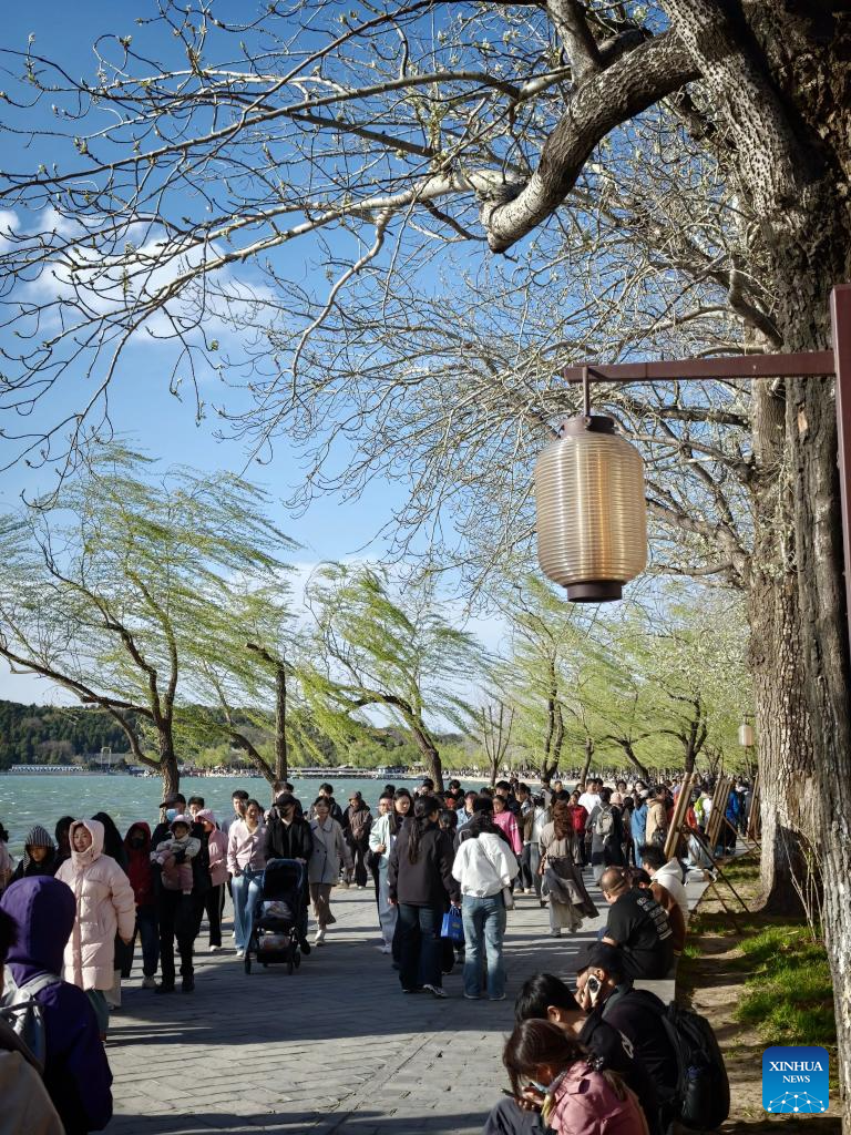 People visit the Summer Palace during the Qingming Festival holiday in Beijing, capital of China, April 5, 2026. (Xinhua/Xing Guangli)