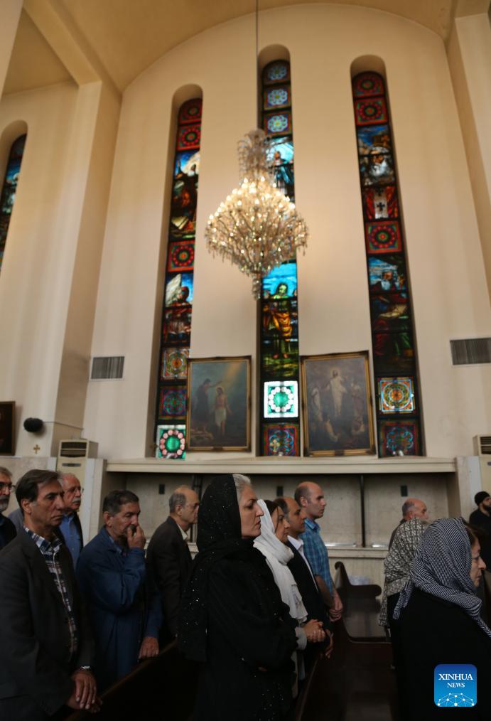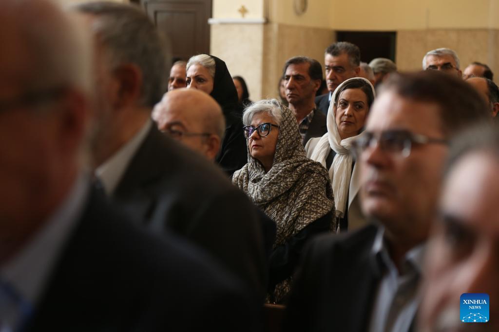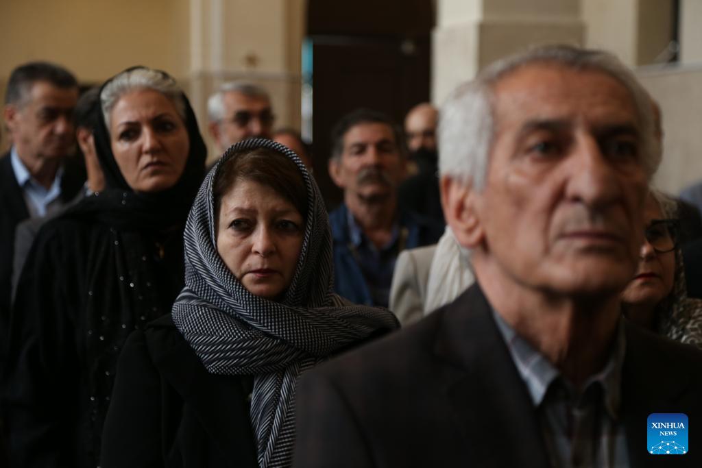 People gather to mourn the death of Iran's late Supreme Leader Ali Khamenei in Tehran, Iran, April 8, 2026. (Xinhua/Shadati)