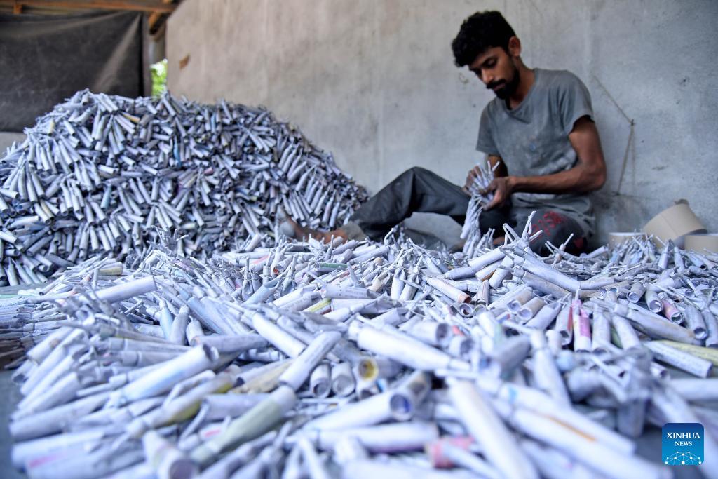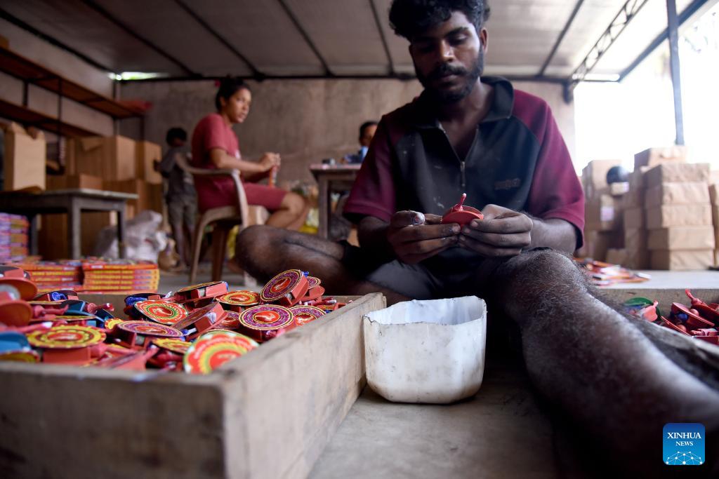 A worker makes firecrackers at a fireworks factory in Kimbulapitiya, Sri Lanka, on April 8, 2026. April is one of the high seasons for fireworks in Sri Lanka due to the festive season of Sinhala and Tamil New Year. (Photo by Gayan Sameera/Xinhua)
