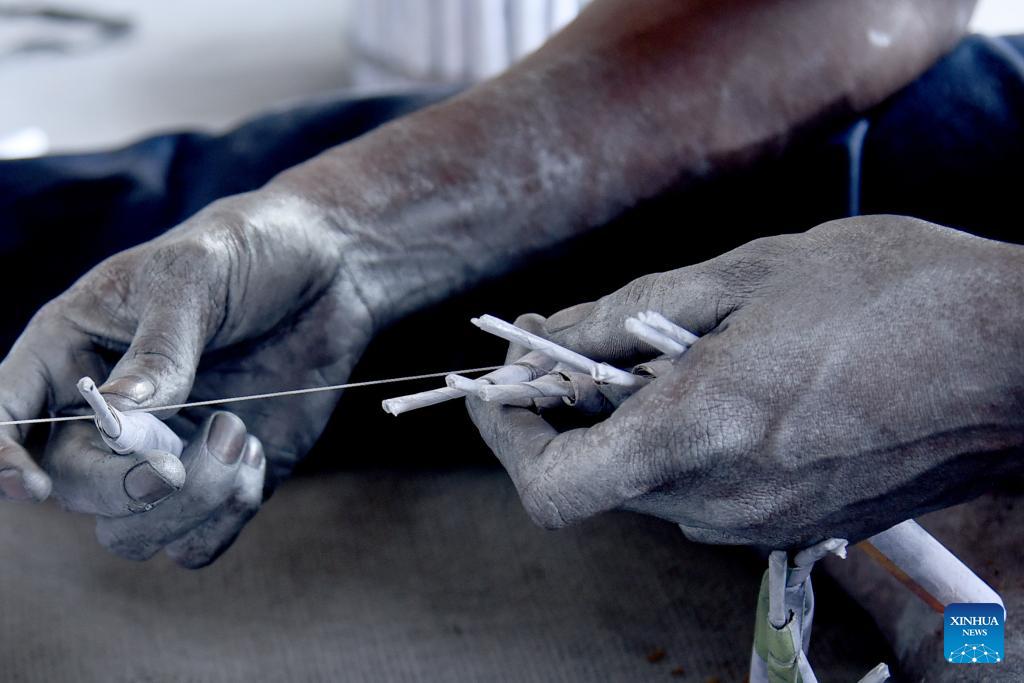 Workers make firecrackers in Kimbulapitiya, Sri Lanka