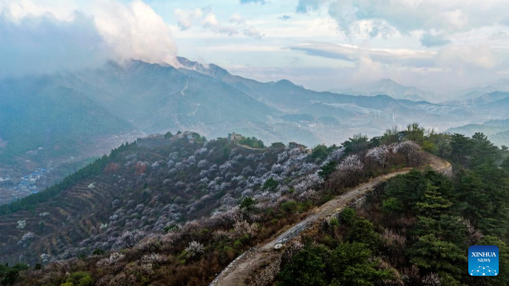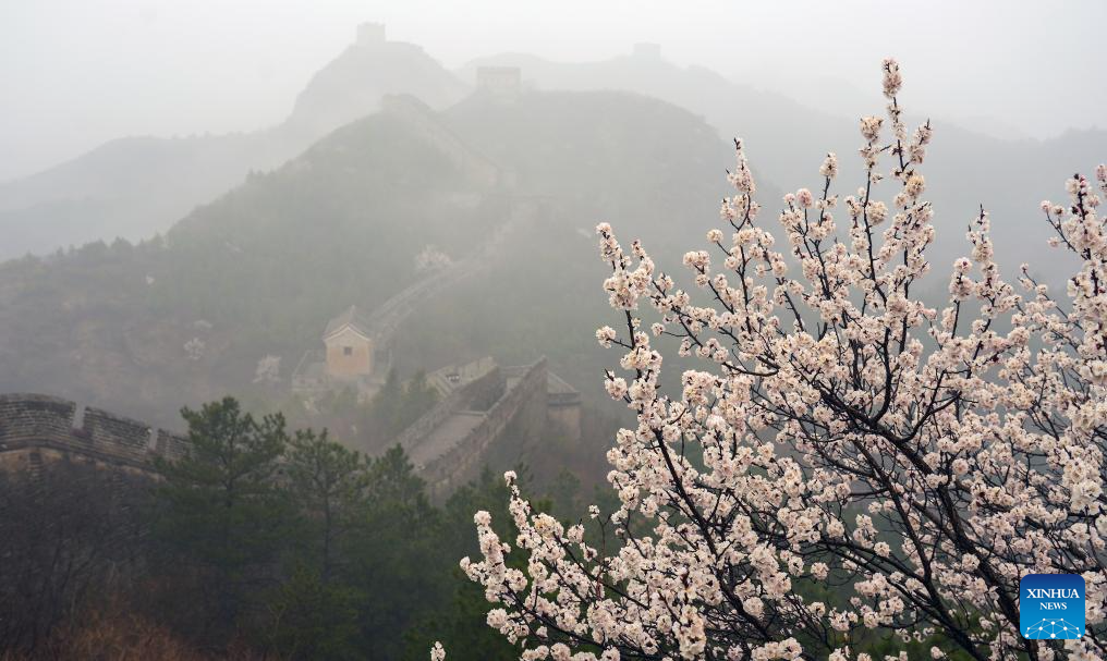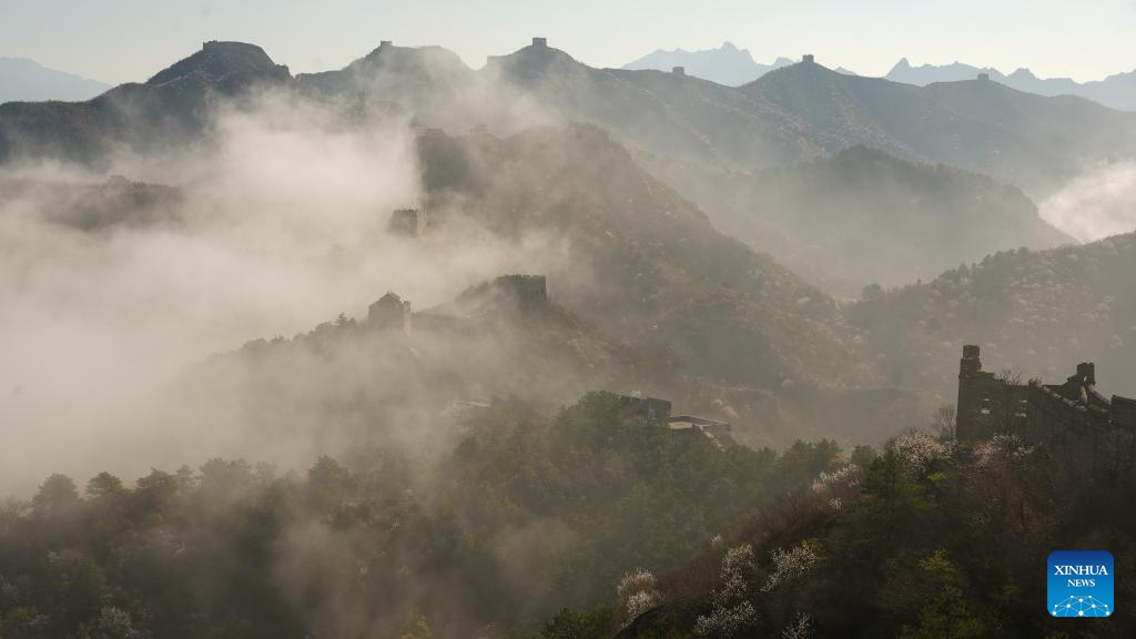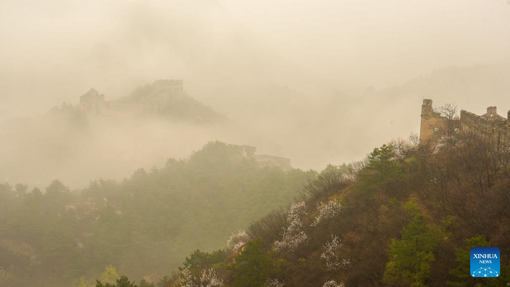This photo taken on April 9, 2026 shows a view of Jinshanling section of the Great Wall after rain in Luanping County, Chengde City of north China's Hebei Province. (Photo by Zhou Wanping/Xinhua)